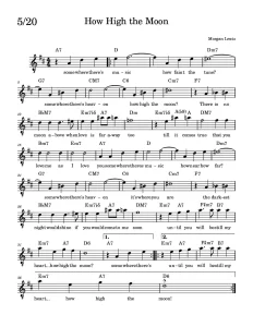 “How High the Moon” is a jazz standard with lyrics by Nancy Hamilton and music by Morgan Lewis. It was first featured in the 1940 Broadway revue Two for the Show, where it was sung by Alfred Drake and Frances Comstock.